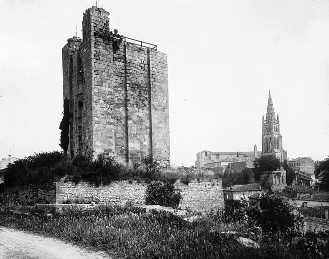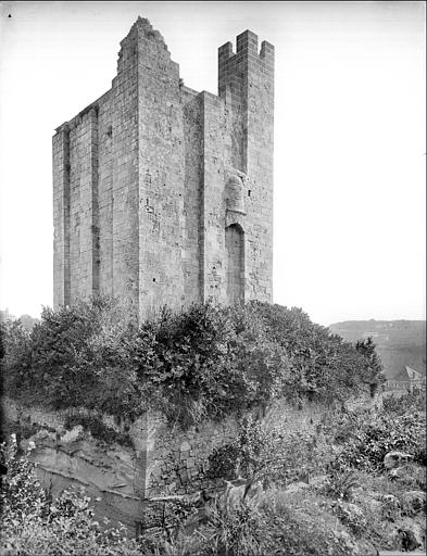 Seul donjon d'époque romane conservé inaltéré dans le département. Les fortifications de la ville remontent à 1199. Le donjon aurait été construit par le même ingénieur et servit de citadelle. Le château se compose de deux cours basses et du donjon carré bâti sur un cube de rochers isolé du coteau par le creusement de fossés. Le cube était entouré de murs. Le donjon, au centre de la plateforme, est carré et garni de contreforts plats sur les angles et au centre des faces. Il comprend trois étages superposés, y compris le rez-de-chaussée. Le sommet du donjon est démoli. Il est probable qu'il n'était pas plus élevé que les deux restes de murs qui le dominent encore et qui doivent donner la hauteur du chemin de ronde.