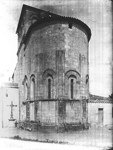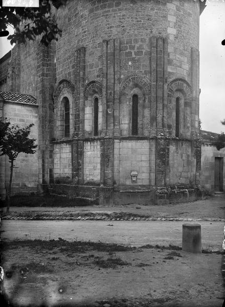Eglise d'origine romane qui se composait primitivement d'une nef unique terminée à l'est par une abside demi-circulaire. Il ne subsiste de cette première période que l'abside et la travée qui la précède. Les deux travées de la nef ont été refaites ou transformées au 14e siècle. Le reste de l'édifice date d'une restauration moderne. L'abside romane est décorée intérieurement de sept arcatures ; deux plus larges dans la partie droite formant choeur ; cinq plus étroites dans la partie circulaire. Extérieurement, des contreforts composés de trois colonnes correspondent à chacune des divisions intérieures et encadrent les fenêtres. Ces contreforts supportaient autrefois la corniche. La travée précédant l'abside est recouverte d'une coupole sur pendentif. Les deux travées de la nef sont voûtées d'arêtes et les nervures retombent sur des faisceaux de cinq colonnettes. Deux chapelles voûtées d'arête formant un petit transept ont été ouvertes à droite et à gauche de la coupole et deux autres semblables de chaque côté de la façade. Ces chapelles sont réunies par une construction servant de débarras, sans communication avec l'église. Toutes les adjonctions ont été réalisées dans le style roman.