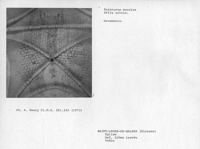 © Monuments historiques, 1992. Cette notice reprend intégralement les termes de l’arrêté de protection au titre des Monuments historiques. Elle répond à l’obligation réglementaire du ministère de la Culture d’établir la liste générale des immeubles protégés (art. R. 621-80 du Code du patrimoine). Elle est donc opposable et fait foi juridiquement. Aucune copie numérique ou papier ne sera fournie par courrier ni courriel. Le dossier de protection complet et l’arrêté sont consultables uniquement sur place, dans la salle de lecture de la Médiathèque du patrimoine et de la photographie (MPP), à Charenton-le-Pont (Val-de-Marne).