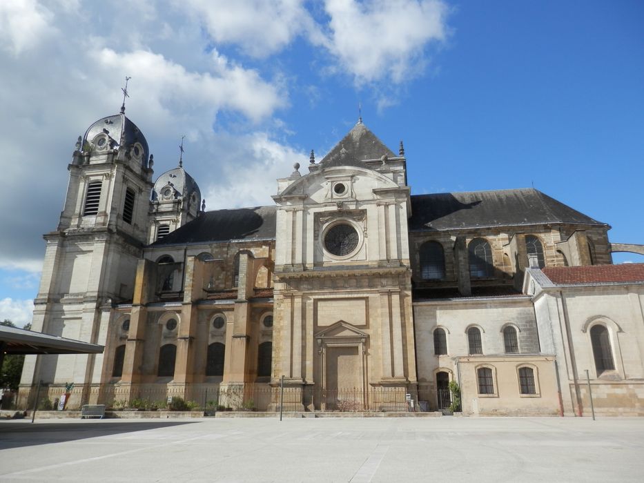 La construction de la cathédrale fut décidée en 1646, suite à l'écroulement du vieux clocher de l'édifice du 13e siècle. La construction s'étendit de 1656 à 1719, sur des plans qui auraient été réalisés par Vauban, et ne fut complètement terminée qu'en 1894. De l'édifice du 13e siècle il ne subsiste que l'ancien portail, reconstruit dans le bras nord. La façade sud présente un fronton à courbe et des décrochements (restaurée en 1894). La tour lanterne est ornée en style corinthien. La sacristie comporte une voûte qui pourrait être ancienne et des peintures inspirées de la fin du 17e siècle.