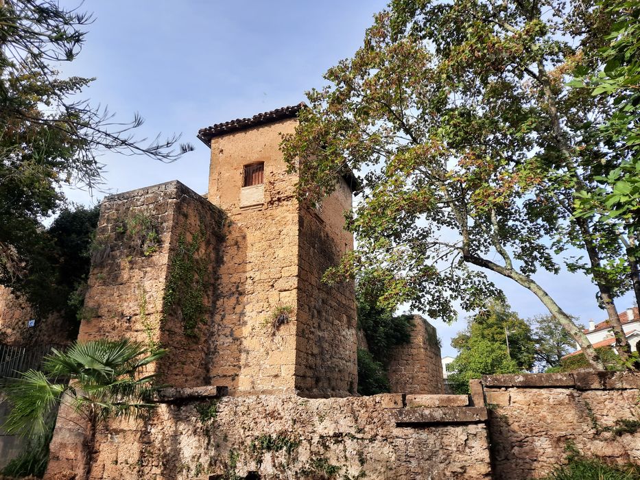 Ces remparts d'une hauteur d'une dizaine de mètres sont construits en grand appareil coquiller d'Uchas, utilisé dans toutes les vieilles constructions de la ville. Ils datent du Moyen Age, probablement du 12e siècle, et servaient à défendre la ville à l'est. Quatre tours barlongues subsistent.