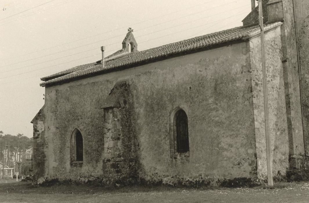 La façade ouest est constituée par un clocher mur qui a dû remplacer un premier clocher carré ou rectangulaire. Une tourelle ronde d'escalier s'élève dans l'angle sud-ouest de la nef et du bas-côté. Un avant porche moderne s'élève contre la façade. L'édifice se termine par une abside plate.