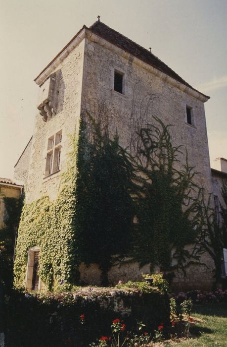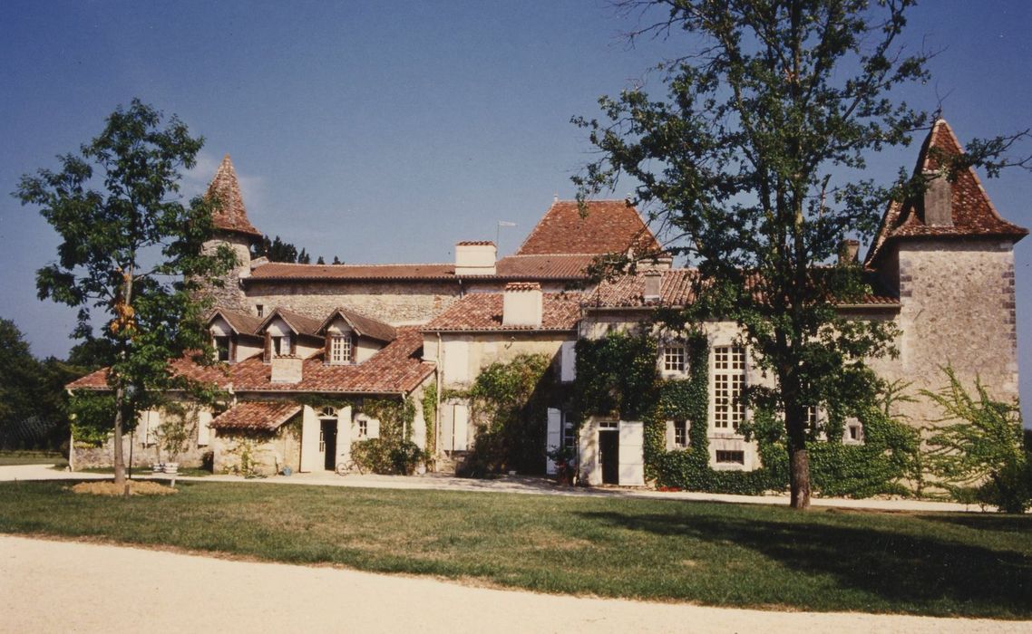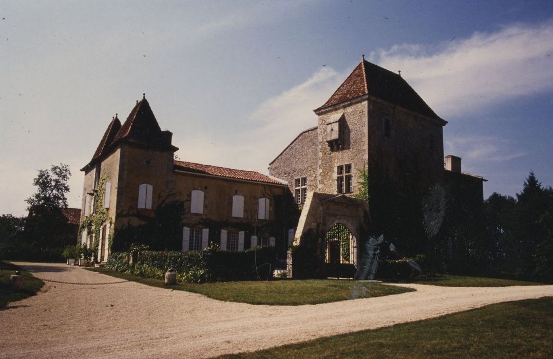 Le château fut construit par les Albret dans la seconde moitié du 16e siècle. Henri de Navarre s'y arrêtait lors de ses chevauchées à travers la Gascogne. L'édifice primitif fut remanié au 17e siècle puis agrandi au 18e. Adjonction de plusieurs bâtiments aux 19e et 20e siècles. La partie 16e-17e siècle est constituée par un corps de logis rectangulaire, encadré à l'angle nord-ouest d'une tour ronde et, à l'angle sud-est, d'un pavillon rectangulaire muni d'une bretèche défendant la porte d'entrée. Des embrasures de tir renforcent également la tour et le pavillon. Ce dernier abrite l'escalier. Le corps de logis abrite, au rez-de-chaussée, une salle tapissée de papiers peints réalisés sous le Second Empire, consacrés à l'évocation des séjours de Henri IV au château. Les bâtiments du 18e siècle conservent un salon lambrissé. Décor intérieur du 19e siècle. Le parc conserve une fontaine ouvragée avec niches à voûtes décorées de coquilles, pilastres cannelés à chapiteaux corinthiens, fronton triangulaire. Diverses dépendances, dont un grand chai, s'étendent côté ouest.