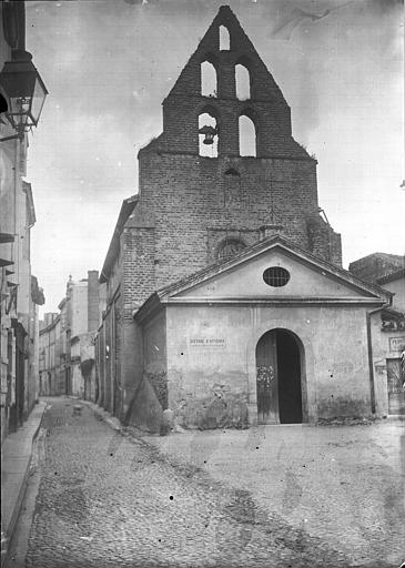 Petit édifice construit en briques et semblant remonter à la fin du 13e siècle. L'emploi de la pierre est réservé à la mouluration, nervures et clefs de voûtes, chapiteaux et bases, encadrements de la porte. Il se compose de quatre travées voûtées d'arêtes, les nervures reposant sur de fines colonnettes. Des chapelles ont été ouvertes en brèche dans le mur latéral droit, à la fin du 15e siècle. Le chevet primitivement carré, a été remplacé par une abside polygonale. L'ancienne façade se termine en pignon, dans la partie supérieure duquel s'ouvrent six arcatures pour les cloches. La porte du 13e siècle s'ouvre aujourd'hui dans un appentis servant à masquer la différence de niveau entre la rue et le seuil de l'église.