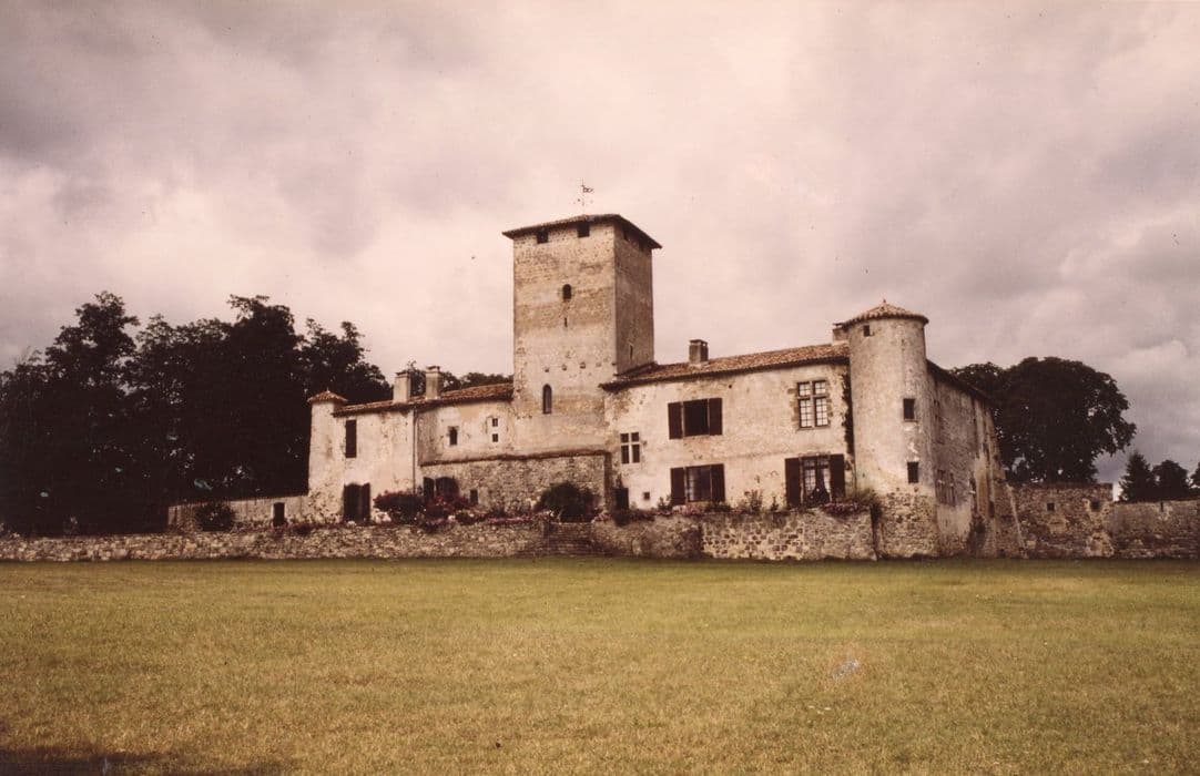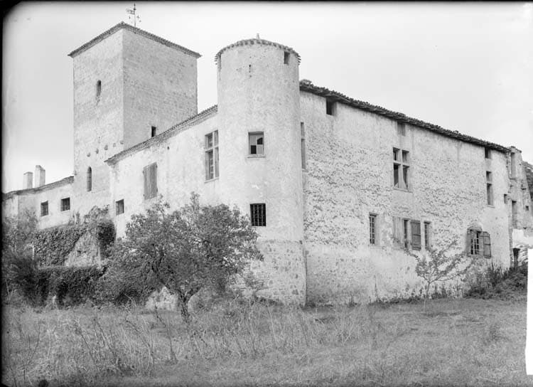 Ambrus est cité dès 1259. A l'exception de la guerre de Cent ans et de la Révolution qui découronna son donjon, le château ne semble pas avoir souffert des événements de l'histoire régionale. Un donjon carré domine l'ensemble des constructions où se retrouvent quelques éléments des anciennes fortifications médiévales (archères, tours, échauguettes...). Des bâtiment s'appuient de part et d'autre de la tour et sont soudés sur la façade ouest par une grande salle barlongue à deux niveaux formant galerie. Les communs sont disposés en retour d'équerre contre cette partie, et déterminent avec les murs d'enceinte une cour carrée dont l'accès est défendu, à l'ouest, par un châtelet d'entrée avec bretèche.