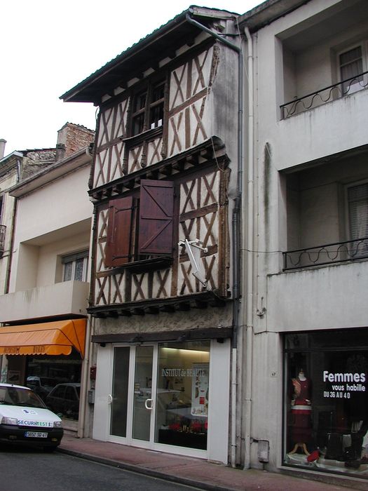 Maison à deux étages, à colombages, le premier étage débordant sur le rez-de-chaussée, le second sur le premier. Le rez-de-chaussée est occupé par une boutique. Le premier étage, dont l'extrémité des poutres de soutien est apparente, est divisé horizontalement en trois registres, et verticalement en six, par des poutres en X. Il est limité de chaque côté par une mince colonnette en bois, terminée par un pinacle. Le second étage, de même facture que le premier, ne comporte que deux registres horizontaux. L'extrémité des poutres de soutien est également apparente, ainsi que celle des chevrons supportant le toit débordant. La face arrière, sur une cour, a conservé un escalier en pierre à trois révolutions, orné d'une rampe en fer forgé du 18e siècle.