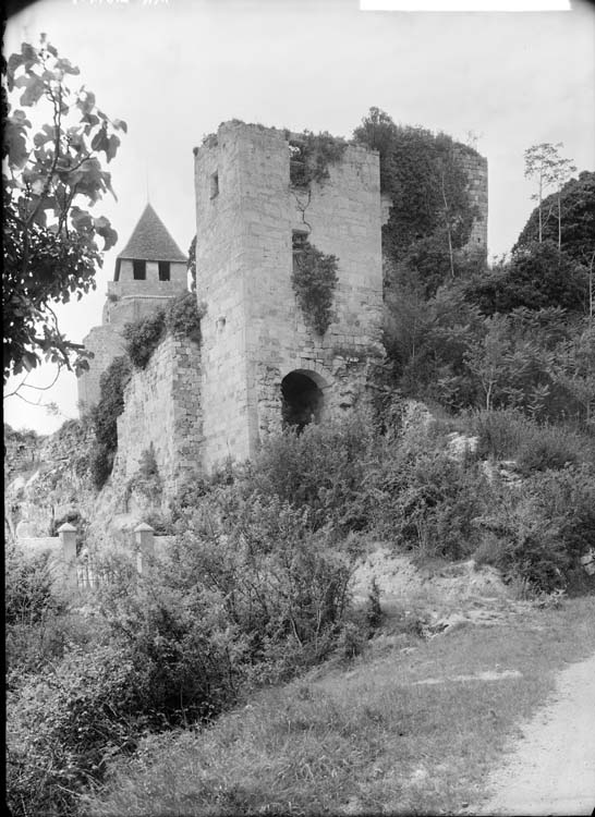 L'enceinte de la ville est isolée par un fossé du côté de la gorge, où s'ouvrait l'unique porte. Un petit château du 15e siècle, en ruine, défendait ce côté, le plus accessible. Il a remplacé sans doute un ouvrage plus ancien. Un corps de bâtiment s'ouvrait à l'est par une porte avec châtelet de défense et passage entre deux corps de bâtiment. Le donjon, de forme carrée, était isolé dans la cour. Il est percé, sur sa face ouest, d'une porte surmontée d'une ouverture en arc brisé. Un bâtiment faisait l'angle des faces est et sud et représente la poterne d'entrée. Des fouilles faites dans le donjon ont mis à jour des sépultures creusées en forme de corps humain, pouvant dater du 10e ou du 11e siècle.