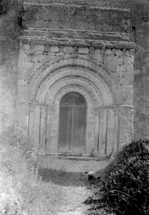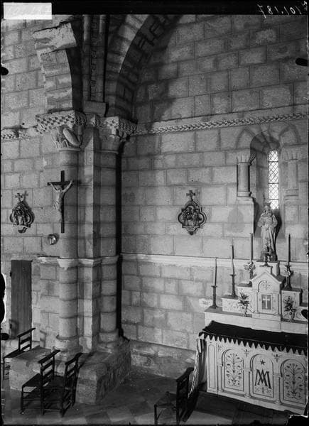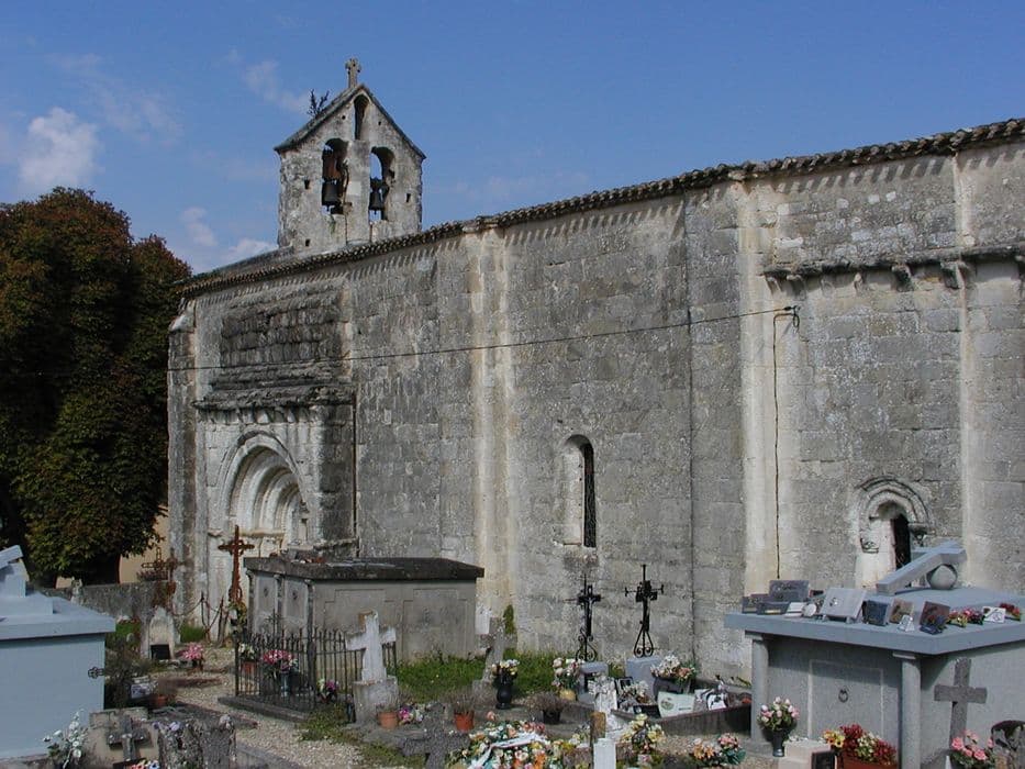 Le choeur est formé d'une abside demi-circulaire moins large que la travée de choeur qui la précède. Chaque fenêtre de choeur possède des colonnettes aux chapiteaux historiés (chute d'Adam et Eve ; adoration des mages...). L'édifice a perdu ses voûtes dont il ne reste que les retombées. La porte s'ouvre au sud dans la travée basse de la nef. Six colonnettes logées dans les retraits des piédroits soutiennent les archivoltes moulurées. L'ornementation du portail est riche. Le clocher s'élevait au-dessus de la travée carrée qui était voûtée d'ogives.