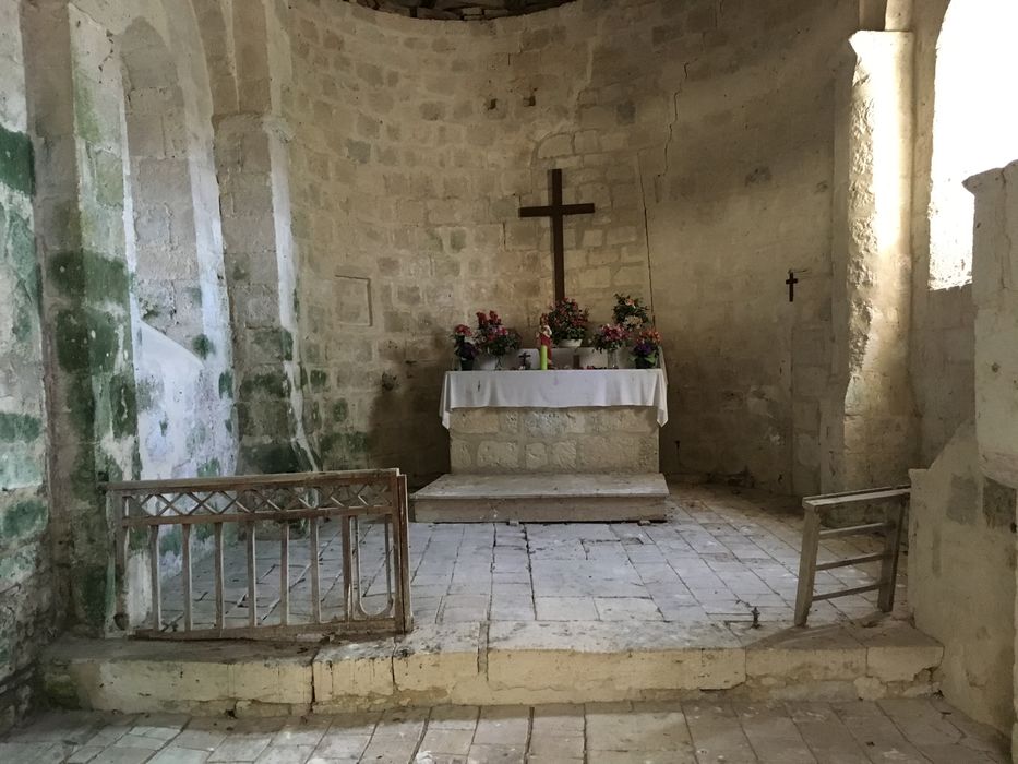 Eglise rurale formée d'un choeur avec chevet sur plan demi-circulaire, dont les voûtes ont disparu. Il subsiste deux chapiteaux romans. Un plafond en planches couvre le tout, les voûtes s'étant effondrées. La nef est dépourvue d'ornements. Une porte romane basse, encadrée de deux colonnettes avec archivolte décorée de billettes, ouvre sur la nef. Elle est protégée par un porche. A l'ouest, une tribune occupe la base du clocher. Ce dernier est constitué par une légère surélévation des trois murs.