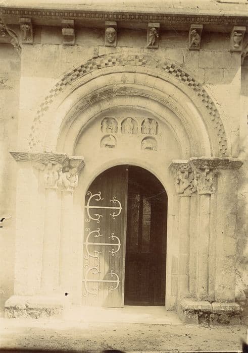 L'église date des 12e et 15e siècles. Le portail roman présente quatre colonnettes aux chapiteaux historiés, qui flanquent les piédroits. Dans les archivoltes, des tores correspondent à ces supports. Le tympan comprend des bas-reliefs formant six compositions, en deux étages (personnages, animaux fantastiques) , le tout abrité sous des arcades.