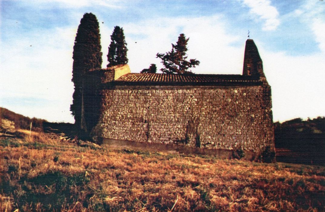 Eglise romane ayant conservé ses voûtes dans le choeur et l'avant choeur. La voûte de la nef a été refaite et surbaissée. Choeur voûté en cul de four. Le clocher est un mur plat triangulaire à une seule cloche.