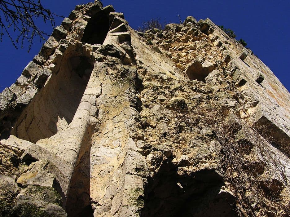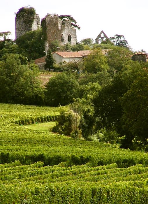 A la fin du 13e siècle, le seigneur rendait hommage au roi d'Angleterre. La forteresse comprenait un mur d'enceinte polygonal enserrant le village, dont les murailles avaient une épaisseur de 1, 50m et une hauteur de 8 à 10 mètres. L'ensemble des vestiges subsistants remonte vraisemblablement à la fin du 12e ou au début du 13e siècle. Ils comrpennent un fragment important du donjon avec l'arrachement de son escalier à vis, ainsi que deux salles voûtées superposées, et un pan de mur de l'ancien corps de logis comportant les traces de deux étages avec leurs fenêtres autrefois géminées.