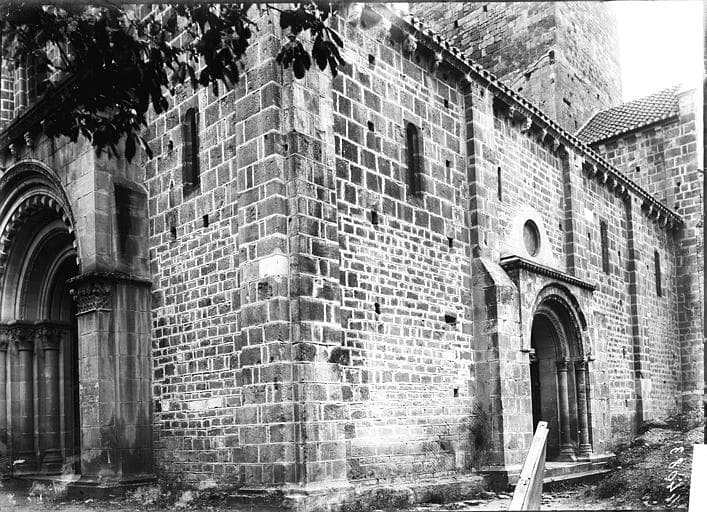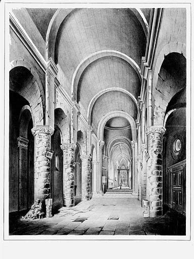 L'église a vraisemblablement été élevée dans la seconde moitié du 12e siècle, mais elle a ensuite subi plusieurs modifications. L'une d'elles consiste en la reconstruction du choeur au 14e siècle. L'édifice se compose d'une nef principale avec deux bas-côtés, d'un transept peu développé et d'un choeur à pans coupés flanqué de deux absidioles. Sous le transept et le sanctuaire se trouve une crypte. Les grandes arcades qui s'ouvrent sur les bas-côtés reposent sur des colonnes aux chapiteaux sculptés (animaux à têtes humaines, sirènes, oiseaux...). Le carré du transept est délimité par quatre piliers cruciformes flanqués de colonnes engagées aux chapiteaux également sculptés (oiseaux adossés, animaux fantastiques...). Cette travée est voûtée d'une coupole sur pendentifs, dont la base est légèrement ovale. L'abside romane fut remplacée, au 16e siècle, par un choeur plus vaste. La crypte, suite à l'exhaussement du carré du transept et du sanctuaire, n'est pas souterraine. Au-dessus des combles se trouve une salle fortifiée dont les meurtrières rondes furent appropriées à l'usage des armes à feu. Cette transformation pourrait dater du 16e siècle. Au-dessus du carré du transept s'élève le clocher, tour carrée massive, crénelée à son sommet.