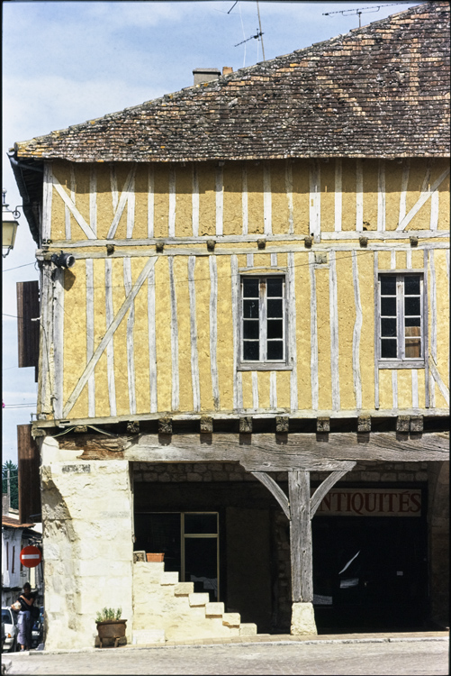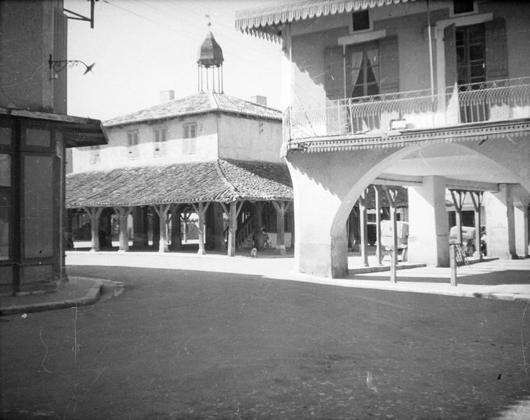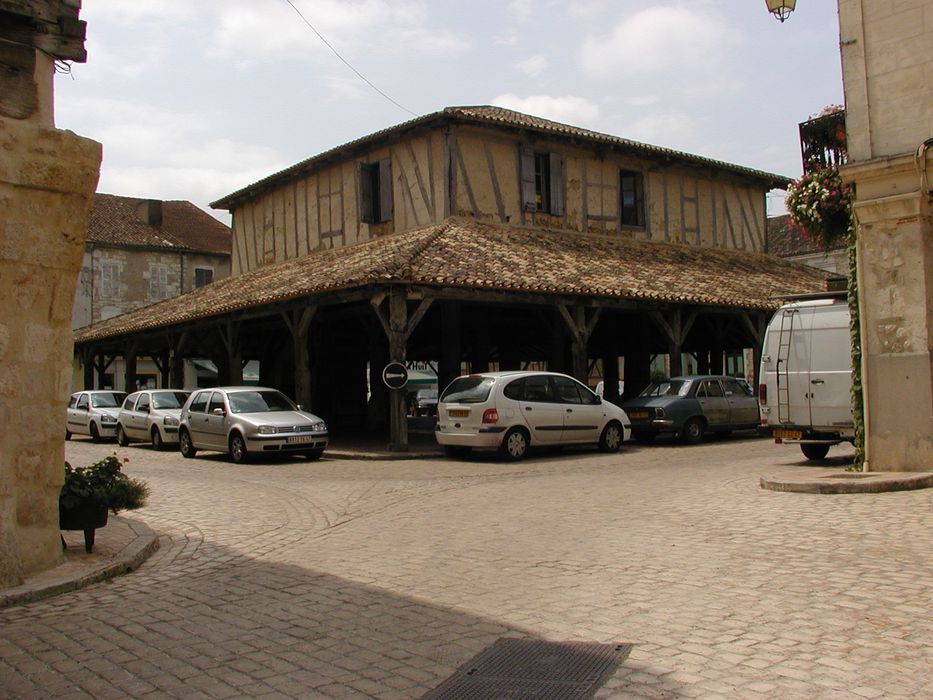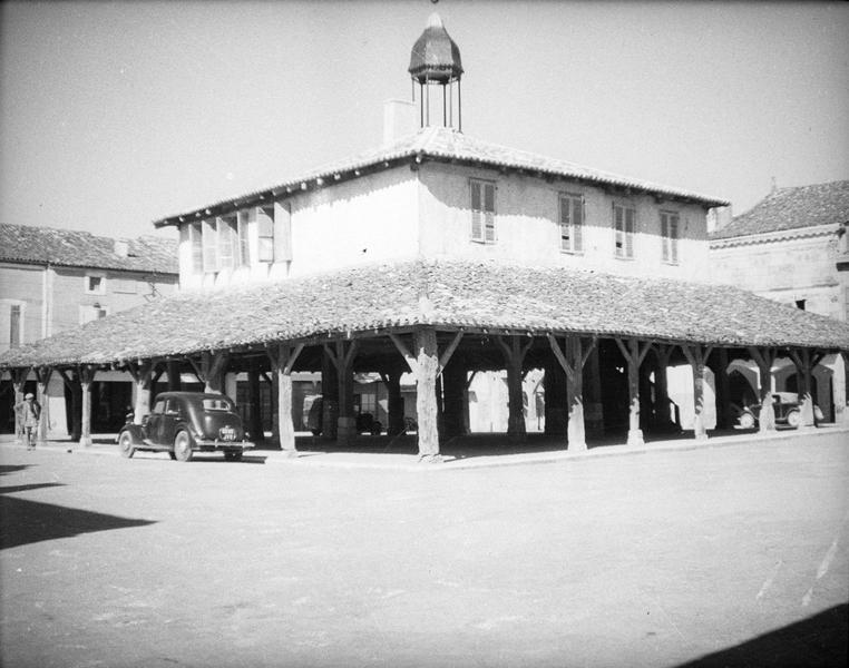 Bastide fondée par Alphonse de Poitiers en 1267. Le plan régulier est organisé autour de la place centrale où se tient la halle qui abrite un marché depuis 1305. Cette halle ouverte dispose d'une charpente en chêne reposant sur trois portiques concentriques de plan carré. La partie centrale formant tabouret supporte un local en pan de bois qui abrita les réunions de la jurade. La halle date du 16e siècle, avec des remplois des 14e et 15e siècles.