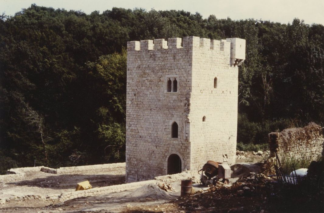 Murs de l'ancien donjon et structures apparentes, ainsi que le sol et le sous-sol de l'ensemble de la parcelle (cad. A 438) : inscription par arrêté du 30 mai 1990