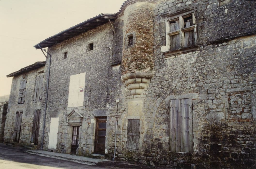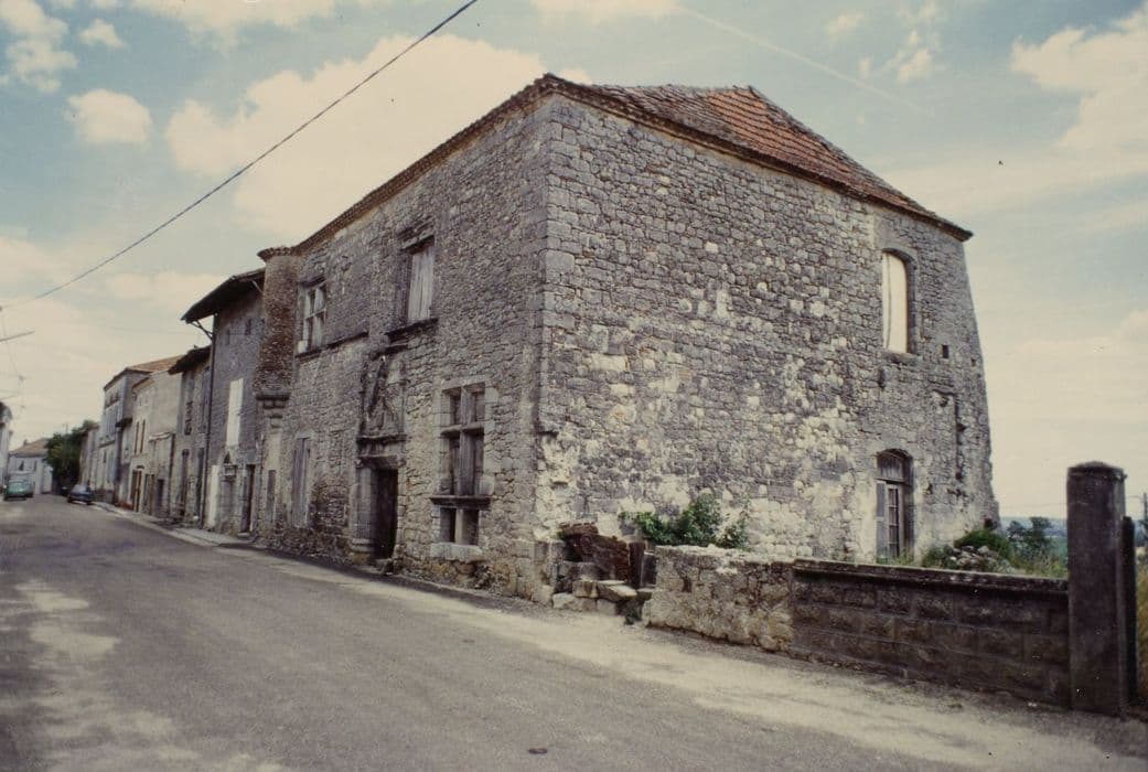 Bastide fondée entre 1250 et 1259 par Alphonse de Poitiers. La ville, encore pro-anglaise en 1315, lutte contre ces derniers à partir des années 1350. Durant le 16e siècle, catholiques et huguenots se disputent la cité. En 1569, Monluc emporte le combat contre le capitaine protestant Arnaud de Clermont. Armand de Gontaud Biron emporte la place en juillet 1580, et en massacre les défenseurs huguenots. Ces derniers reprennent la ville. En 1652, le bourg aux mains des Frondeurs subit l'assaut des troupes royales. ££Le manoir est constitué par deux demeures contigües. La partie ouest est percée de fenêtres à meneaux, des traces de baies en arc brisé, d'une porte à chambranle cannelé coiffée d'un gâble à pinacles surmontés de personnages, datant du 16e siècle. La partie Est est percée d'une porte du 17e siècle à chambranle mouluré sous un fronton triangulaire.