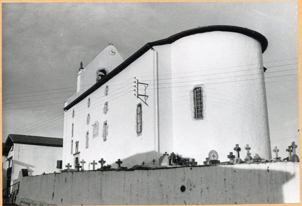 La paroisse est mentionnée dès 1083. L'église est à nef unique suivie à l'est d'une abside circulaire et flanquée au nord d'une sacristie très étroite. A l'intérieur, trois étages de tribunes à balustres supportant une tablette ornée de denticules, se développent autour de la nef. Ces tribunes sont supportées par des poutres aux extrémités sculptées. Le choeur est légèrement surélevé et entièrement occupé par un retable. Les portes s'inscrivent à l'extérieur sous un arc plein cintre dont la clef porte la date de 1659 et qui s'appuie sur des piédroits formant pilastres qui se prolongent au-delà du claveau central de l'arc pour venir buter sur une corniche très saillante. Au-dessus, une niche abrite une statue de la Vierge et est surmontée d'un petit fronton triangulaire. La façade ouest est constituée par le clocher-mur. Aux abords de l'église se trouve l'ostaleria où descendaient les pèlerins.