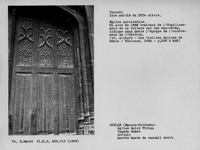 Eglise du 15e siècle qui aurait été construite avec les matériaux d'un édifice romain (quatre colonnes antiques en marbre encadrent le choeur). Portail et voûtes de la nef sculptés. Au-dessus de la sacristie, se trouve une petite salle qui contenait le coffre à trois serrures et à trois clefs dans lequel les jurats chargés de régler les affaires du haut et du bas Ossau déposaient les archives.