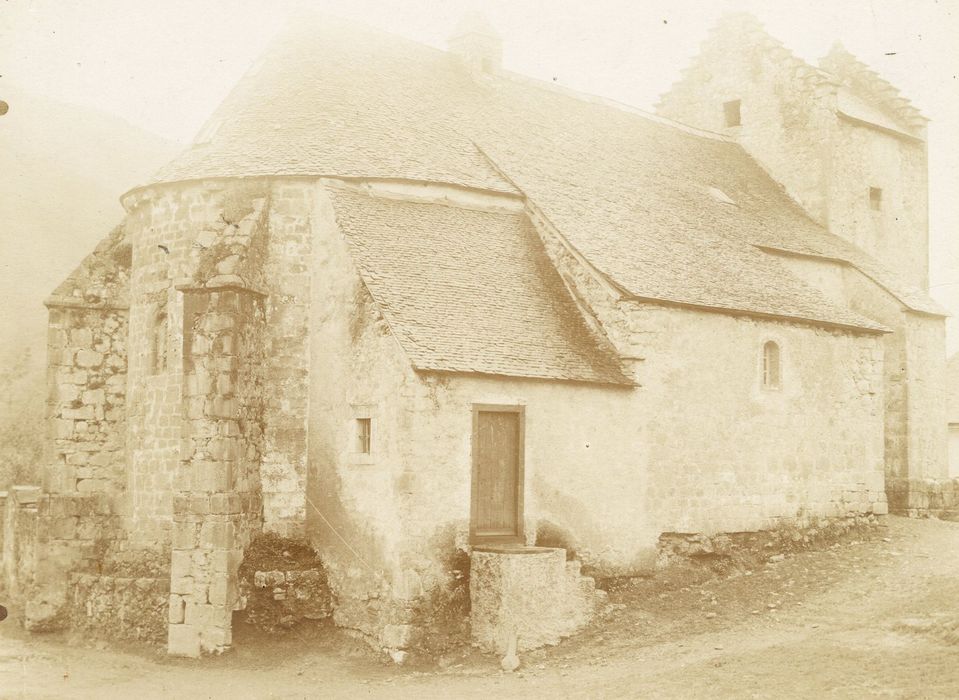 Eglise rurale romane composée d'une voûte avec abside circulaire en moyen appareil. Un clocher carré surmonté de murs couvre la porte.