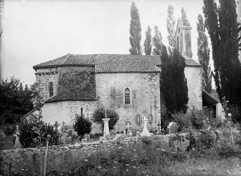 Edifice de la fin du 12e siècle, sur plan en croix grecque, les bras du transept ayant à peu près la même profondeur que l'unique travée de la nef. Les voûtes ont disparu et ont été remplacées par un lambris. L'abside est à trois pans et flanquée de deux absidioles carrées dont l'une a été convertie en sacristie. A l'extérieur, les angles du chevet sont décorés d'une colonnette reposant à mi-hauteur, sur un glacis de contrefort. La façade ouest est surmontée d'un pignon ajouré de deux baies modernes et est précédée d'un porche. L'église se situait sur la route des pèlerins vers Compostelle.