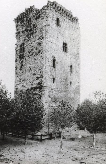 Dans les chartes de la fin du Moyen Age, la tour est appelée "la Bastide de Béarn", créée en 1338. Elle servait de forteresse "nationale" destinée à protéger le royaume contre celui de Navarre et le duché de Guyenne alors aux mains des Anglais. La tour carrée est construite moitié en calcaire, moitié en granit et est éclairée par de nombreuses ouvertures. Elle était couronnée de mâchicoulis. Le rez-de-chaussée était occupé par une basse fosse sans ouverture. Le premier étage était ouvert de meurtrières. Les fenêtres étaient réservées aux étages supérieurs et paraissent dater du 15e siècle, indiquant que l'ouvrage a sans doute été surélevé à cette époque. Près de la tour se trouvait peut-être un château fort qui communiquait avec elle par un pont-levis. D'épaisses assises en maçonnerie ont en effet été trouvées du côté sud du donjon. Les remparts de la ville aboutissaient à cette forteresse, du côté sud. Remparts et bastions de la ville furent détruits en 1523, lors de l'invasion espagnole par les troupes espagnoles de Philibert de Châlons, prince d'Orange. Seule subsiste la tour. Les vestiges possibles du château fort ont sans doute disparu sous Louis XIII, lors de la construction du temple protestant qui aurait utilisé les ruines du château. En 1853, la foudre s'abattit sur la tour et l'endommagea.