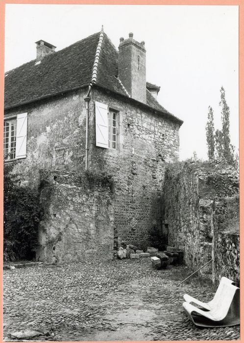 Etablie sur l'ancien mur d'enceinte, la maison de plan barlong est construite en pierres plates et en cailloux roulés. Elle conserve quelques éléments intéressants : souches de cheminées, pignons, consoles d'anciens mâchicoulis couverts, fenêtres à meneaux, détails de moulurations des encadrements de fenêtres. La construction se prolonge par une galerie qui conduisait à l'ancien pigeonnier.