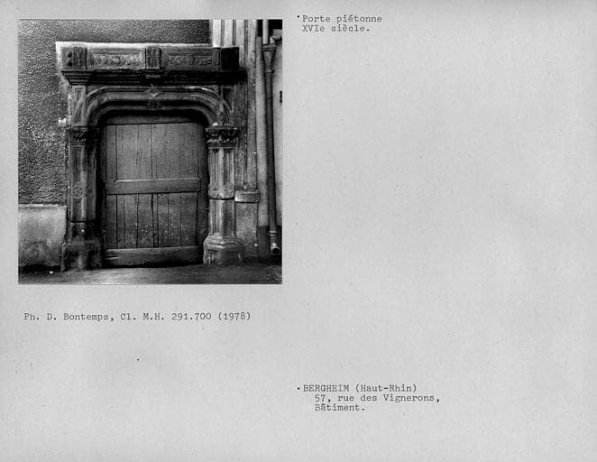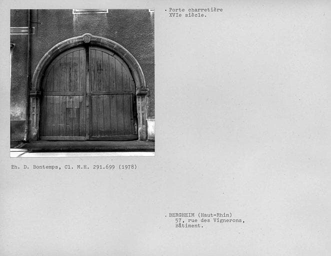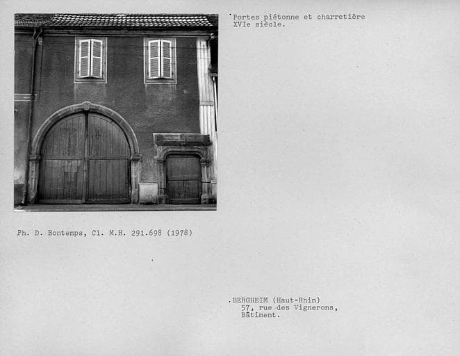 Grand Est ; Haut-Rhin (68) ; Bergheim ; 57, anciennement Hintergasse ( ) 72a rue des Vignerons