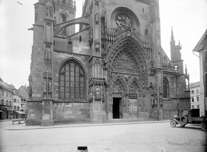 Première mention de l'église en 1287, édifiée suite au transfert des reliques d'un saint mort en 1160. La première église semble avoir été démolie pour être reconstruite à partir du 14e siècle. Important lieu de pèlerinage du milieu du 14e siècle à la fin du 15e siècle. De 1793 à 1795, l'église devient Temple de la Raison puis de l'Etre Suprême. Quatre des cinq cloches sont envoyées à la fonte. Restaurations intérieures au 18e siècle. Période de restauration de 1839 à 1842, sous la direction de l'architecte Griois. De 1860 à 1867, consolidation et restauration de la flèche. De 1878 à 1895, restitutions menées par l'architecte Charles Winckler (toitures polychromes, éléments architecturaux, sculptures). De 1905 à 1908, nouvelle restauration de la flèche. Nouveaux travaux en 1927 puis 1945 suite aux destructions des deux guerres mondiales.