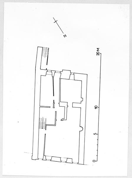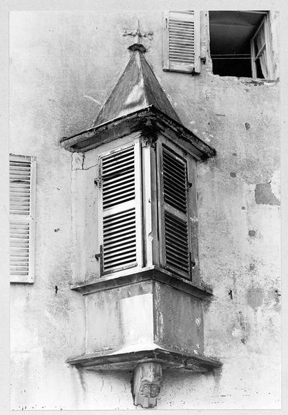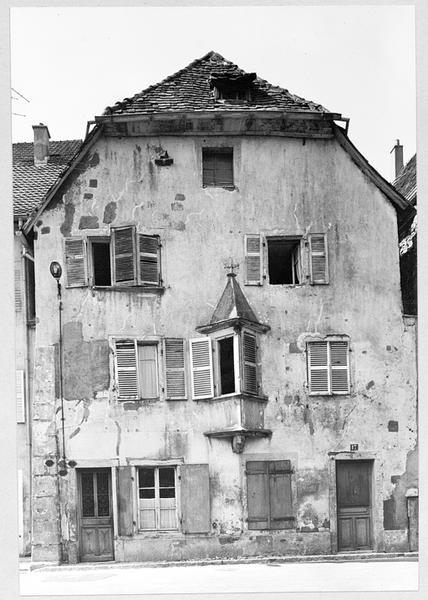 La maison pourrait dater du 15e siècle. Elle comporte trois niveaux et trois travées d'ouvertures. Au premier étage, sa façade sur rue est décorée d'une échauguette triangulaire à base et à corniche moulurée. Les intérieurs semblent avoir largement été transformés. Charpente ancienne typique avec jambes de force de la première génération (15e siècle). Le mur pignon postérieur est construit sur le mur de la première enceinte de la ville, datant de 1290. Le jardin se trouve à l'emplacement de l'ancien fossé des fortifications.