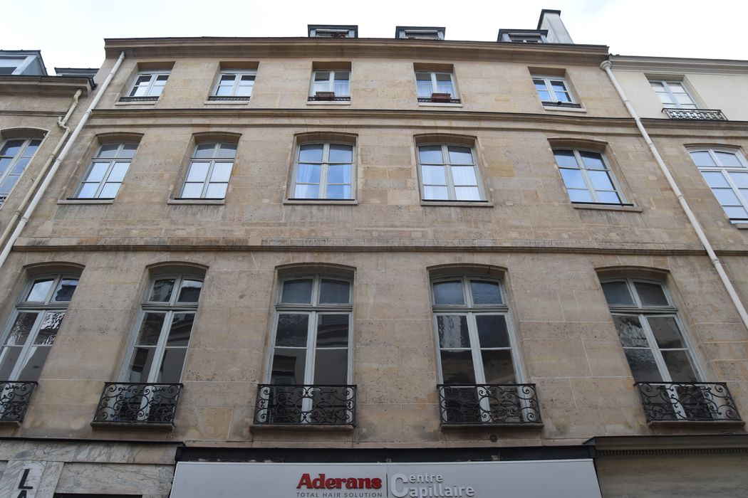 Immeuble de la fin du 18e siècle, comportant au premier étage cinq balcons en fer forgé. L'enseigne (beurre, oeufs, laiterie) a été installée dans les années 1930. La devanture occupe le rez-de-chaussée et l'entresol, en marbre et fer forgé, d'une composition originale pour ce type de devanture. A l'intérieur subsiste le plafond en toile peinte de décors floraux stylisés fixés sous verre.