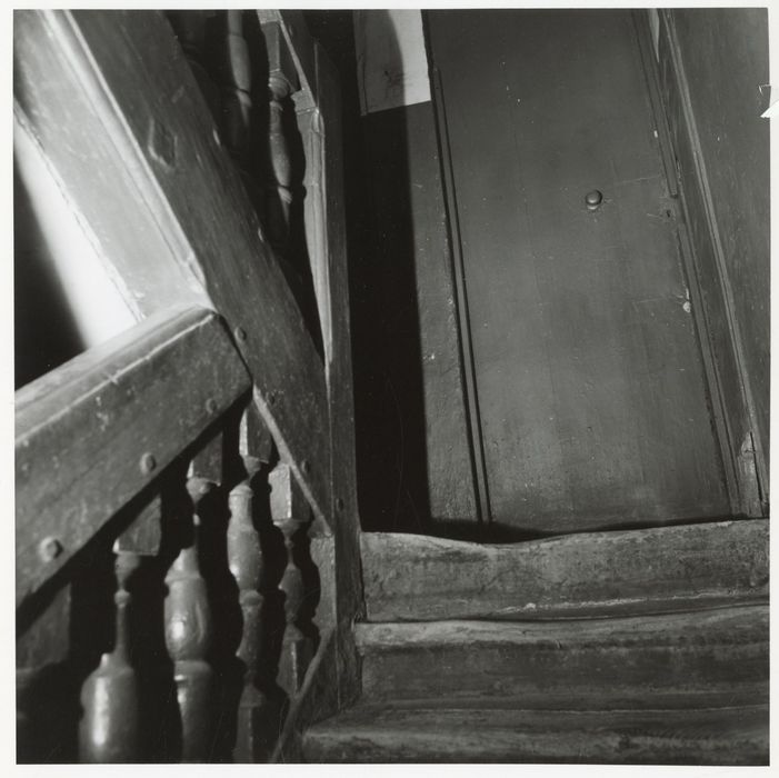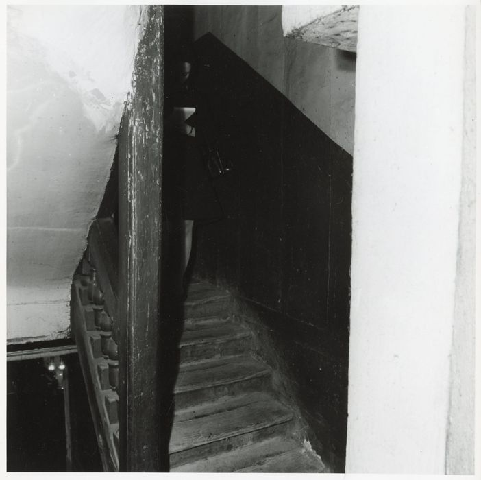 Façade et toiture sur rue ; escalier intérieur avec sa rampe à balustres de bois : inscription par arrêté du 12 avril 1974