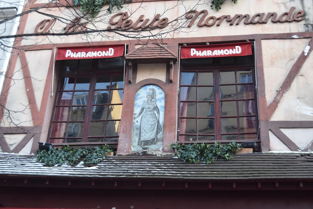 Ce restaurant, spécialisé dans les tripes, est le dernier représentant de ce type de restaurant, dont la décoration en céramiques, miroirs en pâte de verre est dûe à l'atelier Picard et Cie. Bien que revendiquant une ancienneté remontant à l'année 1832, Alexandre Pharamond, Normand d'origine, ne sert ses premières types qu'en 1877. A l'enseigne de La petite Normande, le restaurant est entièrement décoré de neuf à l'occasion de l'Exposition Universelle de 1900. Il comprend au rez-de-chaussée, une grande salle en longueur au fond de laquelle un petit escalier tournant donne accès à la salle, plus petite, du premier étage. Le dernier étage est formé de quatre petits salons contigus dont un formant débarras. Le décor de glaces et de panneaux peints en pâte de verre comporte une iconographie évoquant la spécialité culinaire de la maison, les tripes à la mode de Caen. La façade sur rue, en imitation de pans de bois normands, daterait des années 1930, et incorpore une plaque de faïence montrant une jolie Normande en costume de fête, à l'origine sans doute du nom de l'établissement à la fin du siècle dernier.