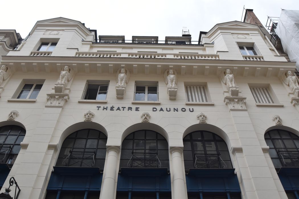 La première pierre du nouveau théâtre de la rue Daunou, de 350 places, est posée le 10 décembre 1919, à l'emplacement de l'ancien hôtel de l'Empire et d'une boutique de modiste. Les travaux ont été commandés par un généreux mécène pour Mademoiselle Jane Renouardt. Le projet est d'Auguste Bluysen ; les travaux seront longs car il s'agit en fait de construire un important immeuble de rapport dont simplement les étages inférieurs et le sous-sol seront occupés par la salle de spectacle. Le théâtre est enfin inauguré le 30 décembre 1921, avec une pièce de Pierre Wolff et André Birabeau intitulée : Une sacrée petite Blonde. La salle de spectacles, décorée par Armand Rateau pour Jeanne Renouardt, comporte des boiseries ouvragées, inspirées de miniatures persanes. Elle a été restaurée à l'identique après un incendie en 1971. Le décor et l'aménagement de la salle sont nettement à l'avant-garde ; les établissements Lanvin et Janssens ont été chargés de lui donner un cachet en rapport avec le goût de la bourgeoisie progressiste. Malgré sa restauration, ce théâtre est un très bon exemple d'édifice qui témoigne dans son ensemble du mouvement Art-Déco, avec des réminiscences de style Empire.
