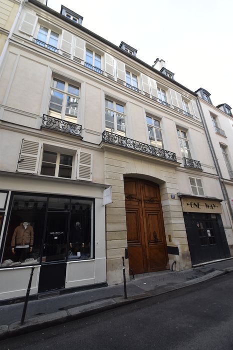 Façades et toitures sur rue et sur cour et escalier avec sa cage, du bâtiment sur rue ; façades et toitures sur cour et ancien jardin, ainsi que l'escalier avec sa cage, du bâtiment situé au fond de la cour : inscription par arrêté du 28 avril 1964