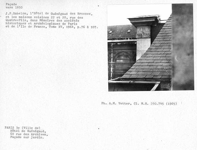 Archives (rue des) 60 ; Quatre-Fils (rue des) 24, 26, 28, 30