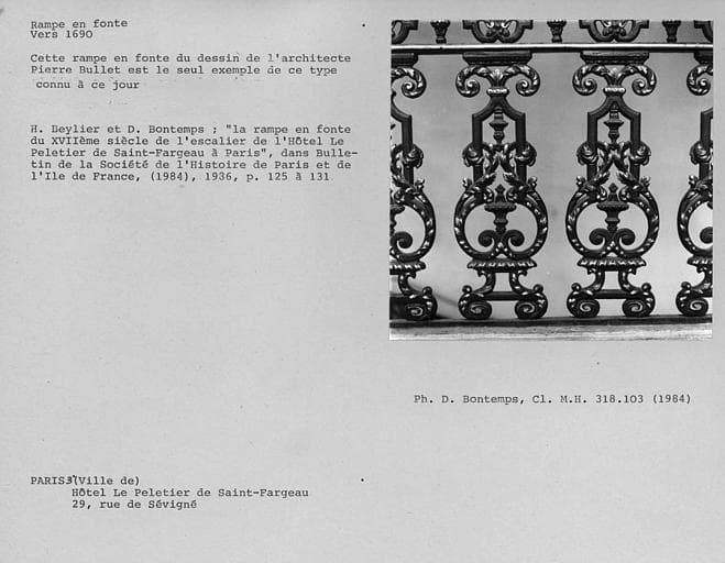 © Monuments historiques, 1992. Cette notice reprend intégralement les termes de l’arrêté de protection au titre des Monuments historiques. Elle répond à l’obligation réglementaire du ministère de la Culture d’établir la liste générale des immeubles protégés (art. R. 621-80 du Code du patrimoine). Elle est donc opposable et fait foi juridiquement. Aucune copie numérique ou papier ne sera fournie par courrier ni courriel. Le dossier de protection complet et l’arrêté sont consultables uniquement sur place, dans la salle de lecture de la Médiathèque du patrimoine et de la photographie (MPP), à Charenton-le-Pont (Val-de-Marne).