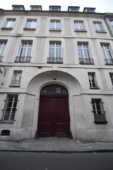 Les façades sur rue et sur cour ainsi que les toitures correspondantes ; les vantaux des portes des numéros 6, 8, 10 ; les vestibules des numéros 6, 10 : inscription par arrêté du 9 octobre 1964 - Le plafond peint en calotte de l'appartement du premier étage du numéro 10 (cad. 03-03 AM 5) : classement par arrêté du 24 juin 1983 - Le salon avec son décor (bas-reliefs des saisons) , ainsi que le plafond peint du vestibule de l'appartement du premier étage du numéro 10 (cad. 03-03 AM 5) : inscription par arrêté du 24 juin 1983