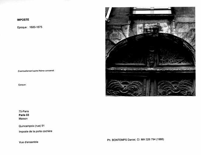 Île-de-France ; Paris (75) ; Paris 3e Arrondissement ; 91 rue Quincampoix