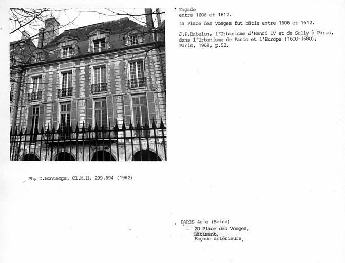Île-de-France ; Paris (75) ; Paris 4e Arrondissement ; 20 place des Vosges