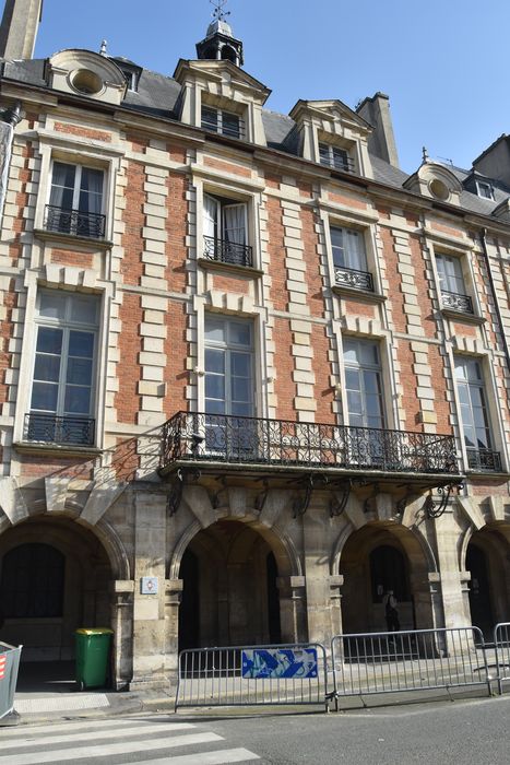 Façades sur la place ; galerie sous arcades y compris le sol ; ensemble des toitures du bâtiment donnant sur la place ; escalier intérieur avec sa cage et sa rampe en fer forgé : classement par arrêté du 26 octobre 1954