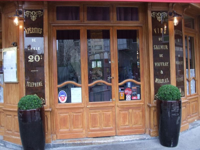 Restaurant d'angle avec un décor typique de la Belle Epoque, réalisé vers 1909, peu après l'ouverture de la rue Jules-Vallès, en 1904. La grande salle est divisée en deux parties par une demi-cloison de bois et de verre gravé. Ancien café "Au réveil matin".