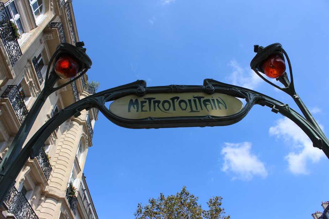 Accès à la station du métro, dessinés en 1900 par l'architecte Hector Guimard pour la Compagnie générale du Métropolitain de Paris. La station est située sur une section de la ligne 4 du métro inaugurée en 1909. L'arrêté de protection porte sur l'ensemble des réalisations subsistantes de Guimard pour le métro.
