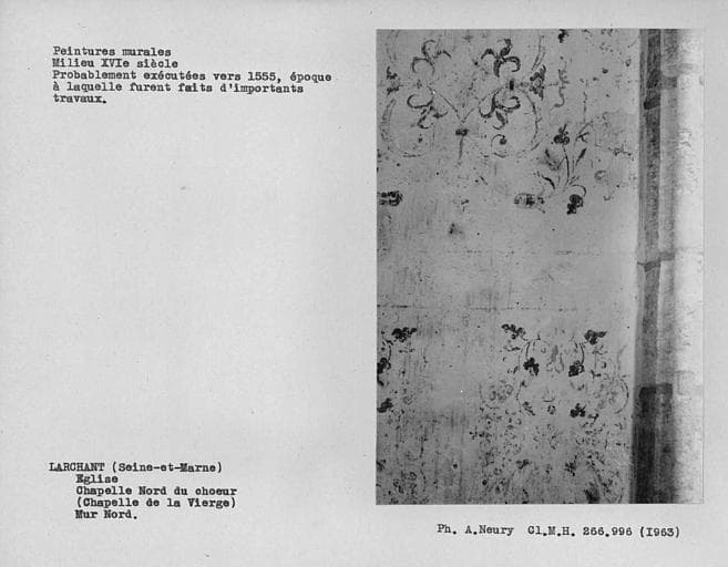 © Monuments historiques, 1992. Cette notice reprend intégralement les termes de l’arrêté de protection au titre des Monuments historiques. Elle répond à l’obligation réglementaire du ministère de la Culture d’établir la liste générale des immeubles protégés (art. R. 621-80 du Code du patrimoine). Elle est donc opposable et fait foi juridiquement. Aucune copie numérique ou papier ne sera fournie par courrier ni courriel. Le dossier de protection complet et l’arrêté sont consultables uniquement sur place, dans la salle de lecture de la Médiathèque du patrimoine et de la photographie (MPP), à Charenton-le-Pont (Val-de-Marne).