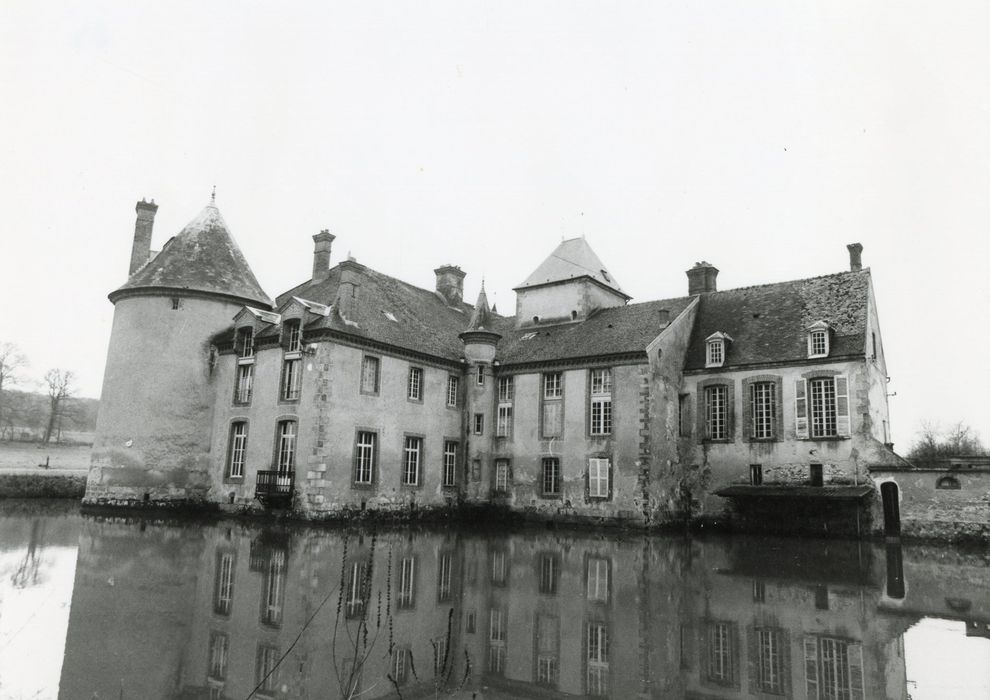 Façades et toitures du château et des communs, y compris des deux tours ; jardin enserré de douves ; douves et les deux ponts sur les douves ; à l'intérieur : escalier central y compris le dôme et les balustres de bois, cheminées avec trumeaux de la grande chambre dans l'aile Nord et de la chambre dite de Trudaine (cad. B 5, 6, 8, 9) : inscription par arrêté du 21 décembre 1984