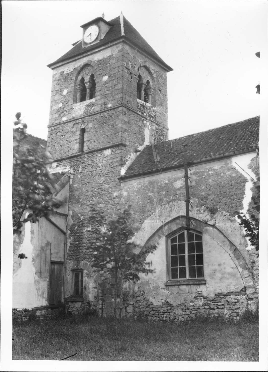 Clocher et restes du bâtiment du 12s servant de sacristie : inscription par arrêté du 10 décembre 1927