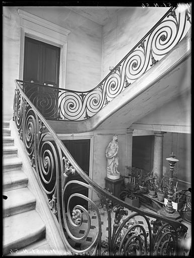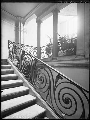 Escalier avec sa rampe en fer forgé et sa cage : inscription par arrêté du 4 octobre 1962