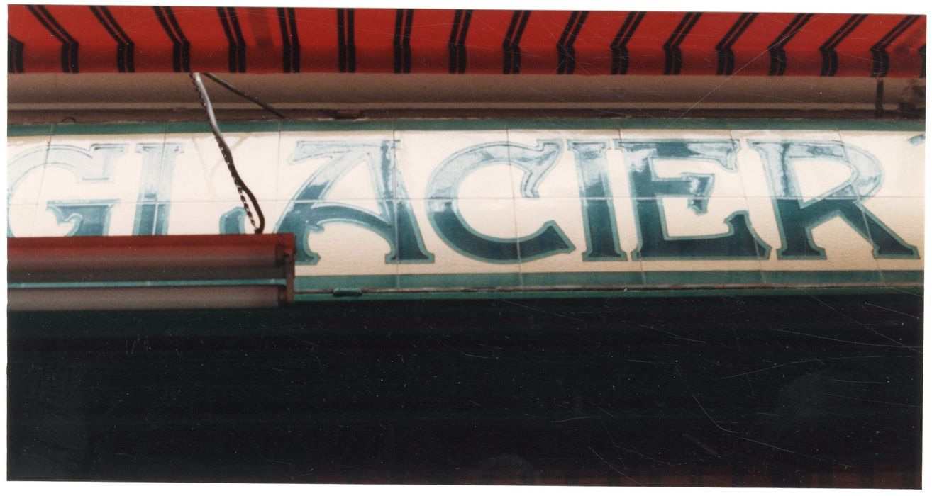 Crémerie-glacier installée en 1903 avec une devanture de carreaux de faïence représentant des paysages champêtres.