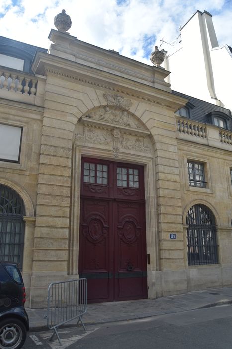 Edifice élevé à partir de 1714 par l'architecte Claude-Nicolas Le Pas-Dubuisson, destiné à être utilisé comme immeuble de rapport. Portail sur rue décoré d'une allégorie sculptée par Louis Dupain. Le grand salon sur jardin est agrémenté d'un décor 18e provenant peut-être de l'ancien hôtel de Romans (situé autrefois boulevard Saint-Denis).