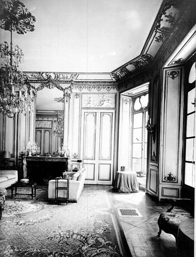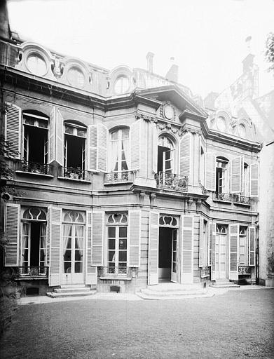 Les parties suivantes de l'hôtel sis entre cour et jardin : la façade sur jardin ; la décoration intérieure du grand salon Louis XV, de la chambre à alcôve Louis XV et de la salle à manger en stuc de l'appartement du rez-de-chaussée : inscription par arrêté du 25 octobre 1954 ; La toiture de l'hôtel sis entre cour et jardin : inscription par arrêté du 16 décembre 1958