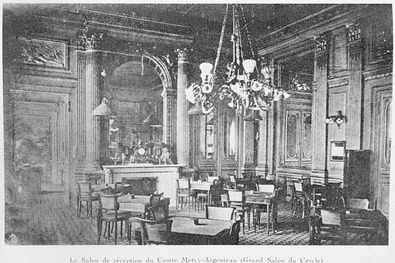 Hôtel construit dans le dernier quart du 18e siècle. Il est habité par la famille Mercy-d'Argenteau, puis par la famille de Laborde et d'autres familles avant d'être vendu en 1834 à la compagnie d'assurances générales sur la vie. Plusieurs personnalités habitèrent la demeure au début du 19e siècle : Boiëldieu, Rossini...Les salons de réception et le grand salon carré, entouré de colonnes corinthiennes et possédant des bas-reliefs allégoriques en dessus-de-porte, ont gardé leur décoration du 18e siècle. La décoration de l'ancienne salle à manger serait due à Charles Garnier et date de 1890.